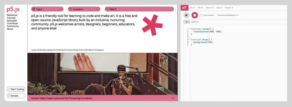 That project ignited my curiosity about what I can achieve through creative coding. I aim to learn the fundamentals of coding and expand my skills using p5.js, a library and tool designed for learning coding and creating visual art.